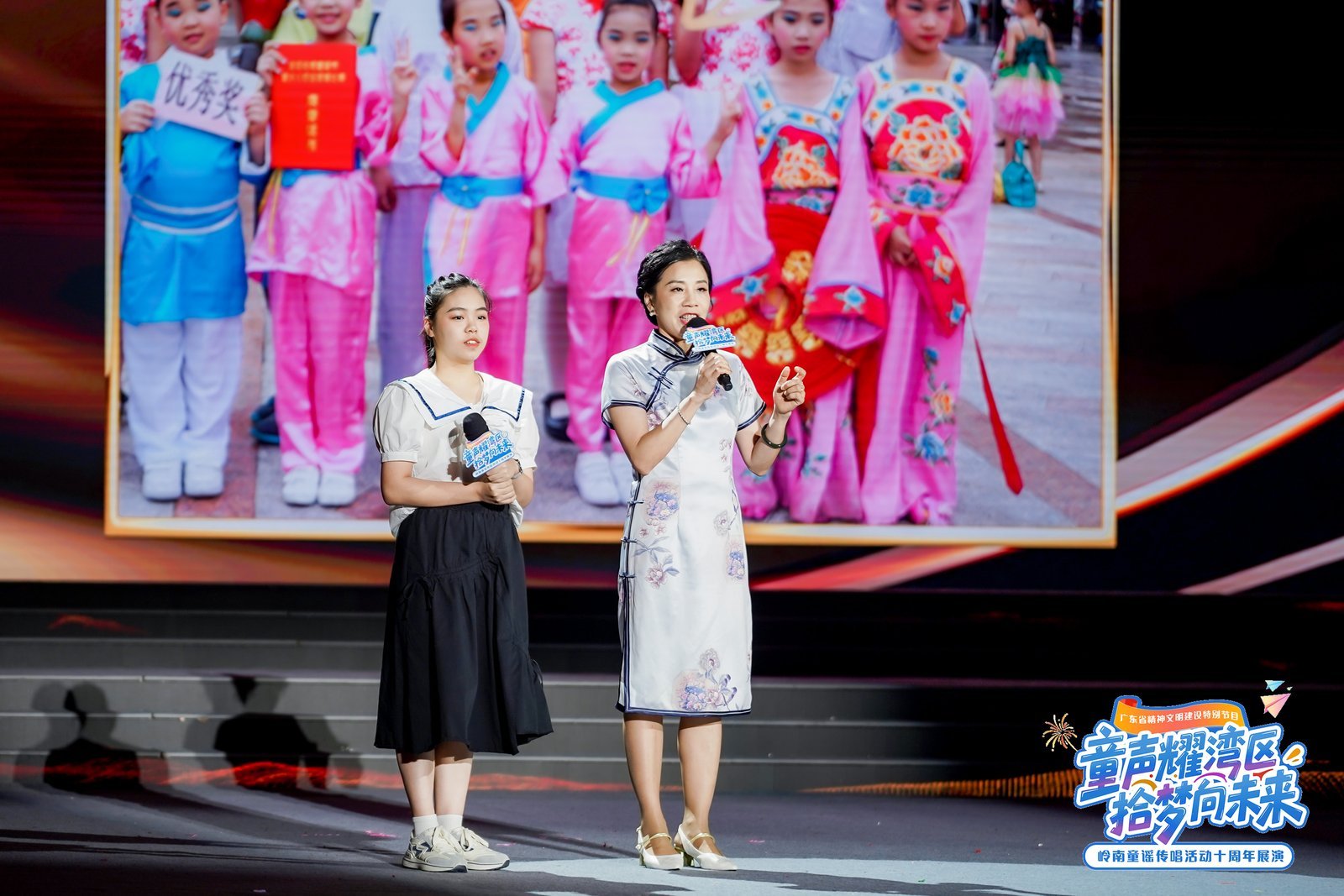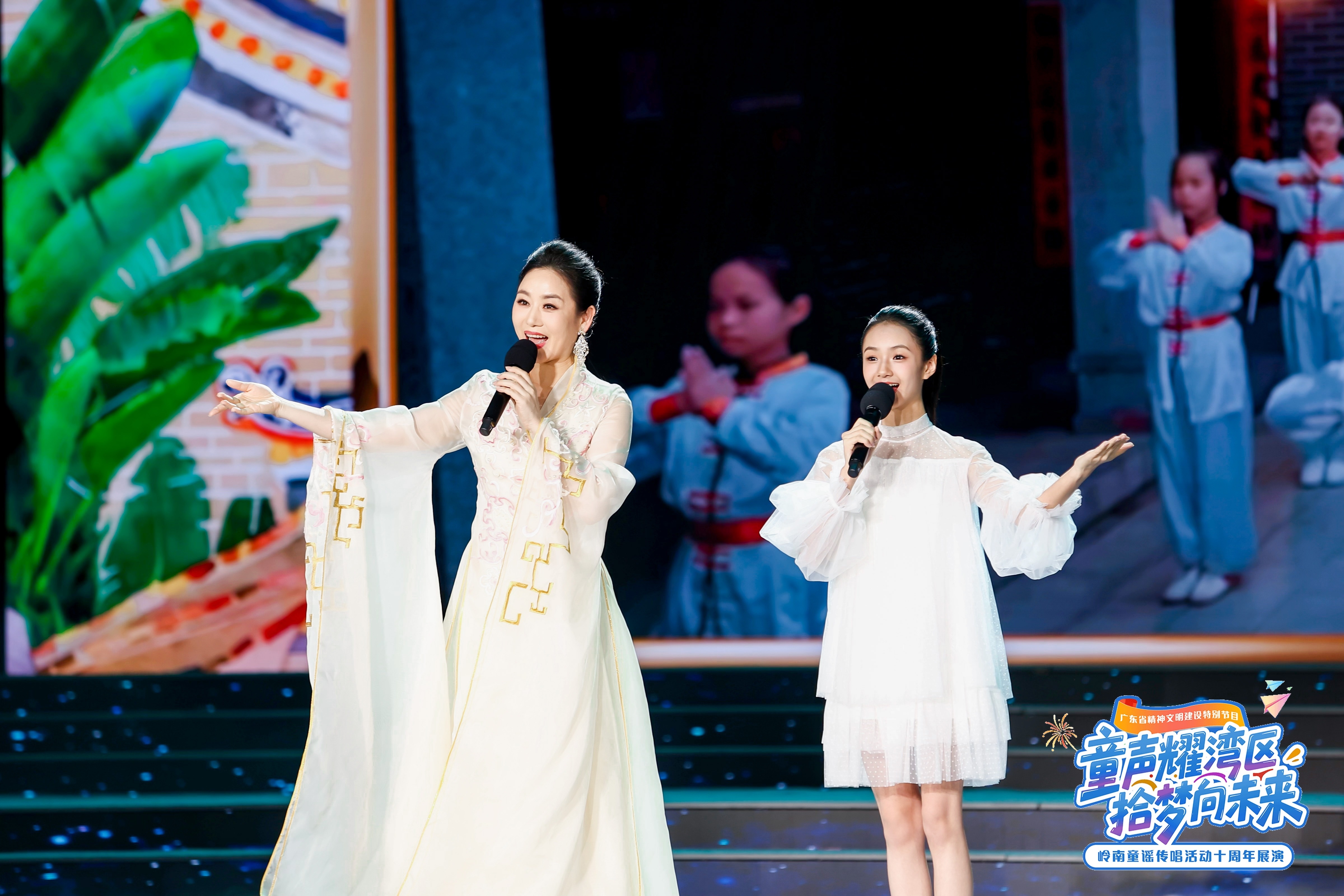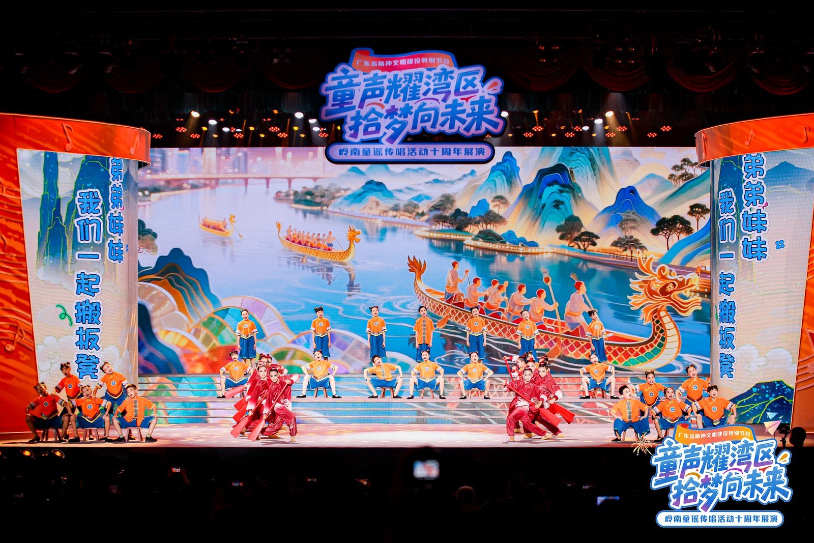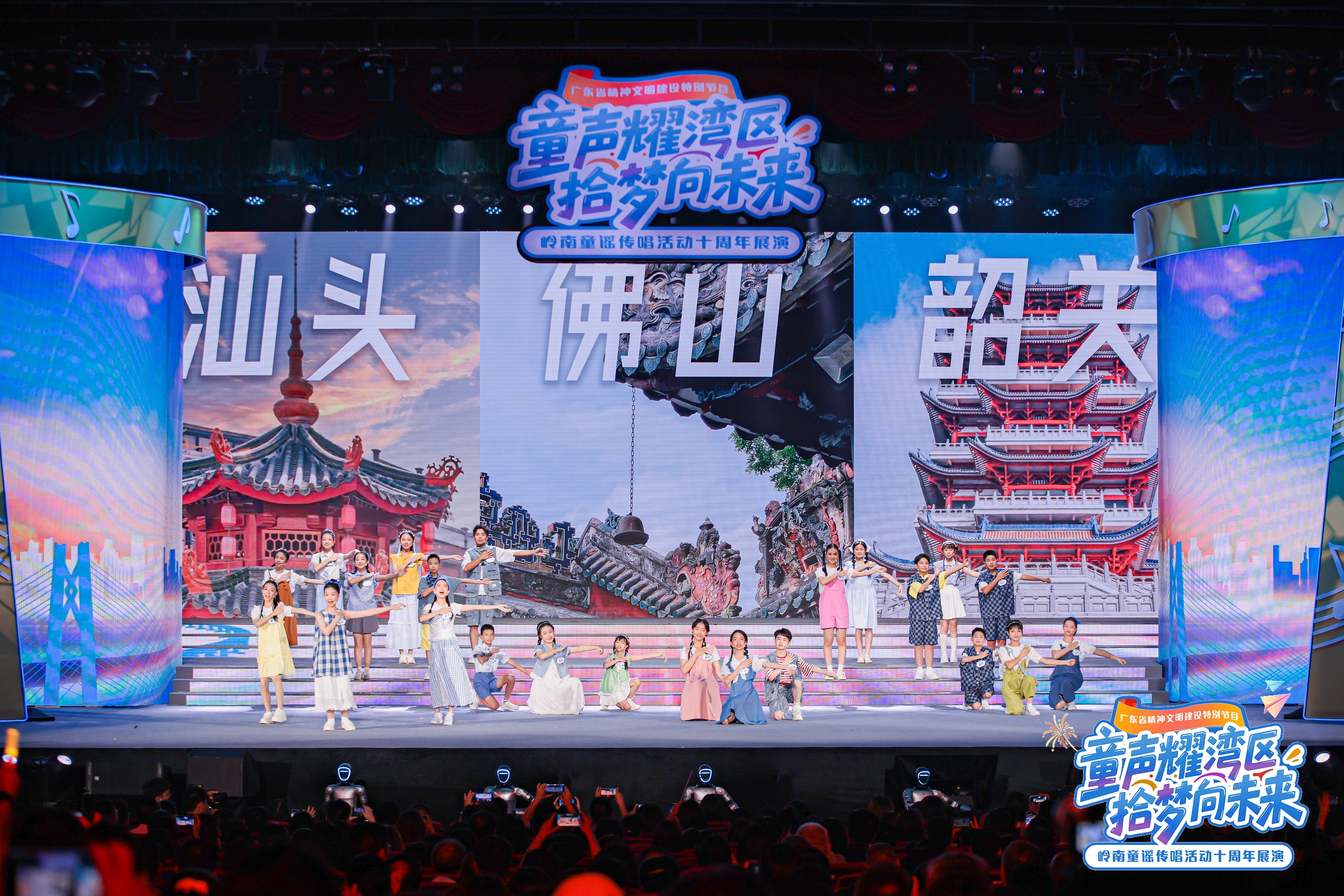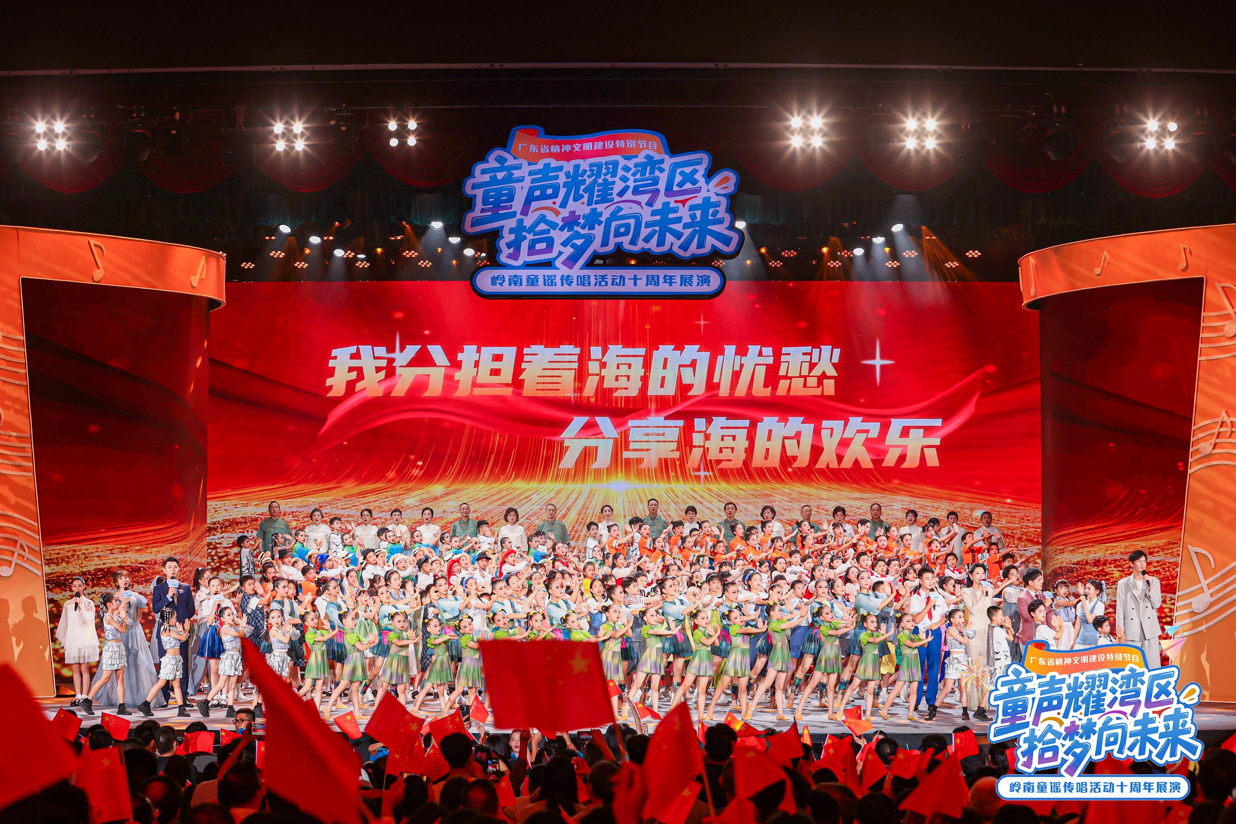 这场星光熠熠的展演活动,萃取岭南童谣征集传唱活动十年精品佳作,背后更是以童谣作品生动折射出大湾区发展日新月异、蓬勃发展,展现大湾区十年建设成果与人文精神凝练。